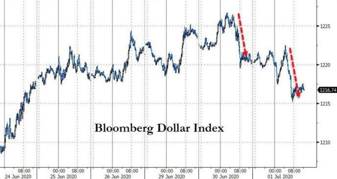 在下半年的首个交易日,美元与黄金均未能取得开门红,反倒是美股,依然延续了二季度的火热表现。 展望日内,美国劳工部将发布备受瞩目的6月非农就业报告,由于周五美国市场将因独立日假期而休市,因此今晚数据的表现很可能将为本周市场最终走向盖棺定论。至于华尔街将以何面貌迎接独立日假期?又有多少美国民众能在“国庆日”前重返就业大军?不妨让我们拭目以待! 行情数据显示,美元周三震荡回落,因美国经济数据总体稳健,欧洲数据改善,削弱了美元作为避险货币的吸引力,但鉴于新冠病毒疫情再度带来的风险,不少业内人士仍对美元前景感到乐观。 第三季开局,美元兑澳元、纽元和加元等在风险偏好时期表现良好的货币下跌。美元兑欧元