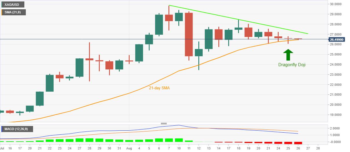 Silver Price Analysis: XAG/USD sellers ignore Tuesday’s Dragonfly Doji to attack $26.50