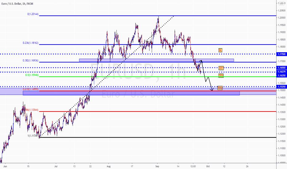 EURUSD Is respecting our Analysis from last few days. Now we are currently holding this sell Position. Now I want to discuss about it why we are selling this. When market closed it price was 1.62 that is below than 0.3 fib level. Now it will touch Price level 1.55 than it w