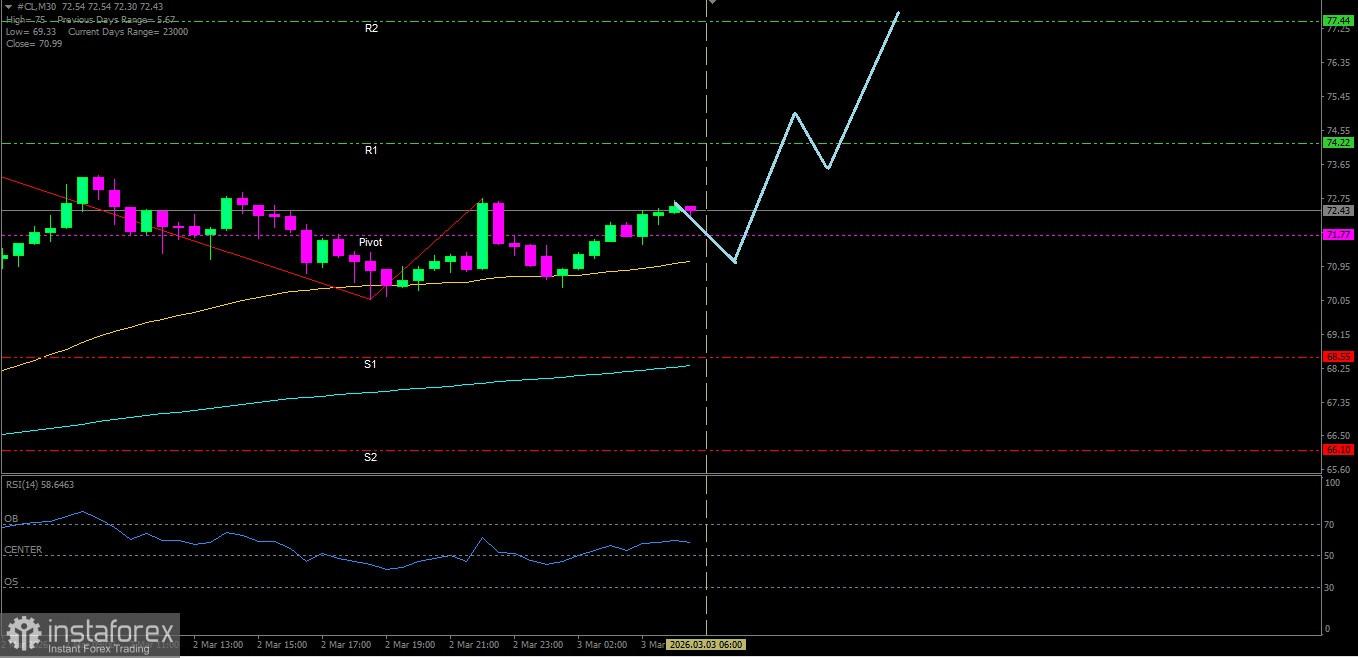 Minyak Mentah Dengan semua kondisi indikator-indikator teknikal yang menunjukan penguatan di #CL maka hari ini berpotensi menguat naik menuju level Resistance terdekatnya Level-Level Kunci 1. Resistance. 2 : 77.44 2. Resistance. 1 : 74.22 3. Pivot : 71.77 4. Support. 1 : 68.55 5. Support. 2 : 66.10