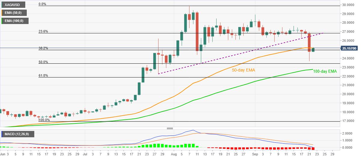 Silver Price Analysis: 50-day EMA probes XAG/USD bounce off multi-day low