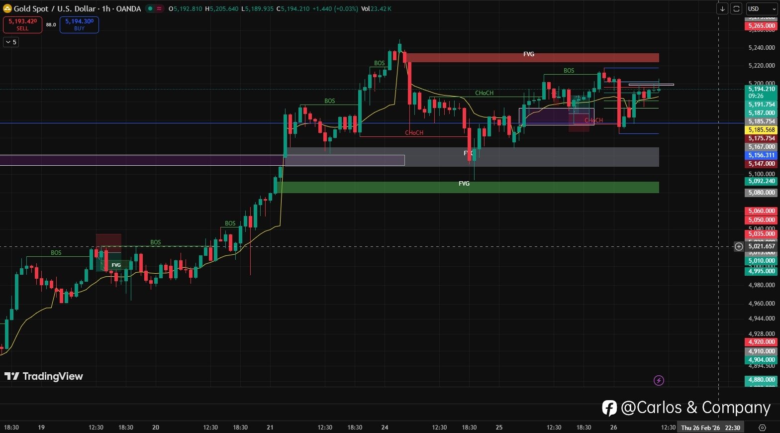 Gold is trading near 5,194, consolidating below the 5,220–5,240 supply zone after a strong bullish leg. Market structure remains bullish with higher highs and higher lows, while short-term price action suggests compression before expansion. Key Levels: Support: 5,175 | 5,156 | 5,130 Resistance: 5,22