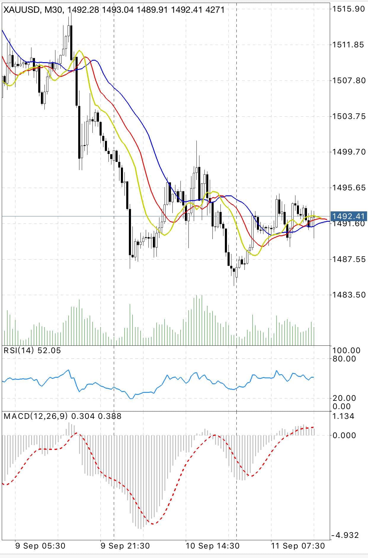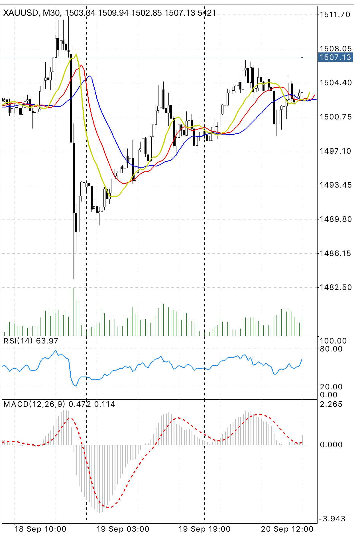 第9天 2019年09月17日 周二 黄金还是有点不明确方向,继续震荡,那就先放一放。等看得懂的时候再做。
