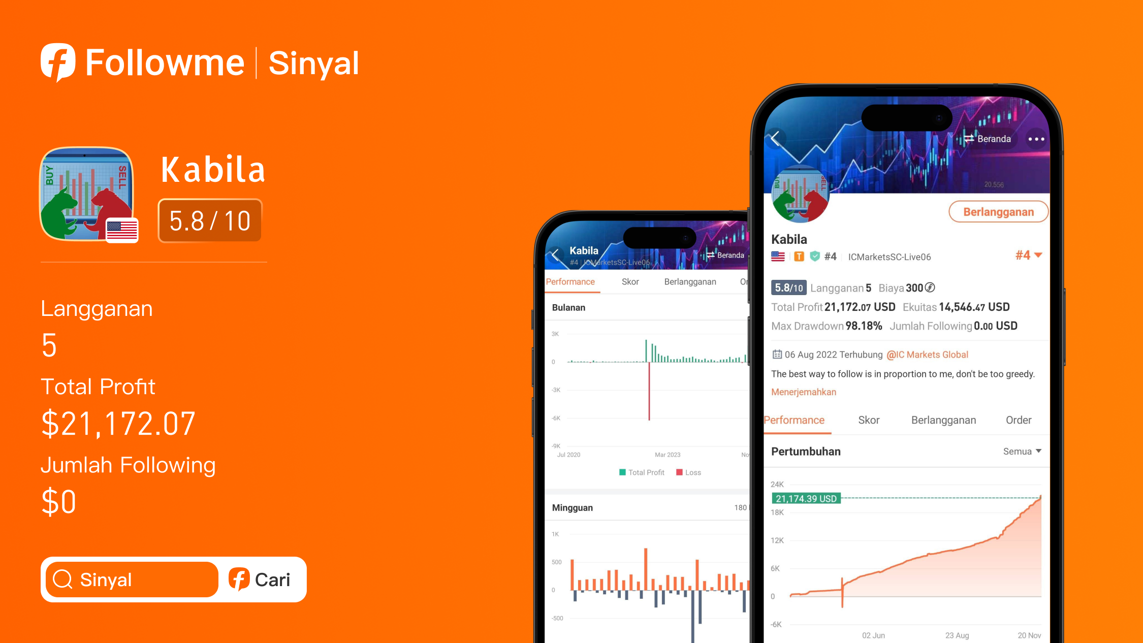 Nickname: @Kabila United States Broker: IC Markets EUR/USD & GBP/USD Specialist Kabila, trader asal Amerika Serikat dengan fokus pada pasangan mayor EUR/USD, menunjukkan performa stabil dan terukur dengan penekanan kuat pada manajemen risiko. Dari modal awal $79,350.24, ia membukukan p