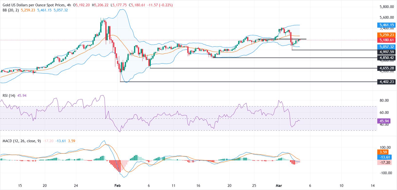 Emas rebound pada hari Rabu setelah penurunan 4,4% pada hari sebelumnya seiring Dolar AS berhenti setelah rally dua hari.Konflik AS-Iran mendukung permintaan safe-haven, membatasi penurunan harga Emas.Secara teknis, XAU/USD bertahan di atas support utama di dekat $5.100 dengan resistance muncul di s