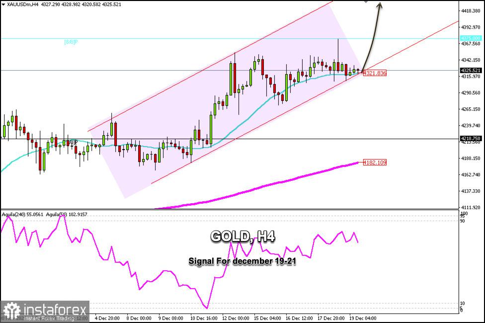 Sinyal Trading untuk EMAS pada 19-22 Desember 2025: beli di atas $4.321 (SMA 21 - rebound)