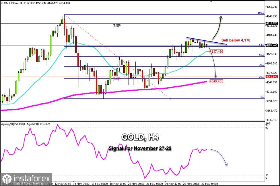 Sinyal Trading untuk EMAS pada 27-30 November 2025: jual di bawah $4.170 (21 SMA - 61,8% Fibonacci)