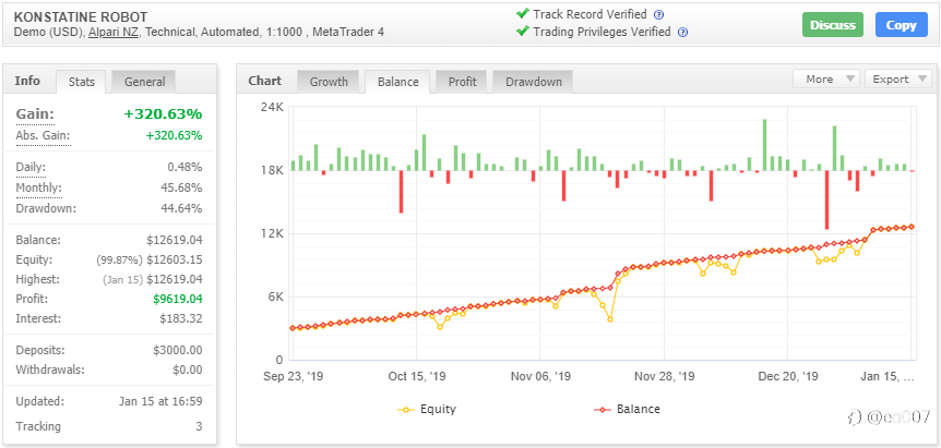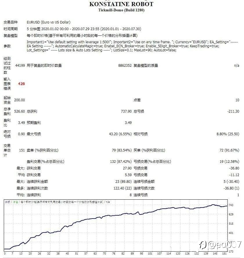 Konstatine Robot EA 基于高波动性的市场行情进行交易,在价格突破期间一次连续下单。同样,其最重要的关键之一就是保持资金的安全,而关键因素是设置止损值。 Konstatine Robot EA 的特性: 策略类型:马丁EA 平台:MetaTrader 4(在任何货币对上均有效) 货币对:EURUSD 交易时间:推荐M15(在任何时间范围内工作) Konstatine Robot EA 的测评: Konstatine Robot EA 基于高波动性的市场行情进行交易,在价格突破期间一次连续下单。同样,其最重要的关键之一就是保持资金的安全,而关键因素是设置止损值。另一方面,高级风险