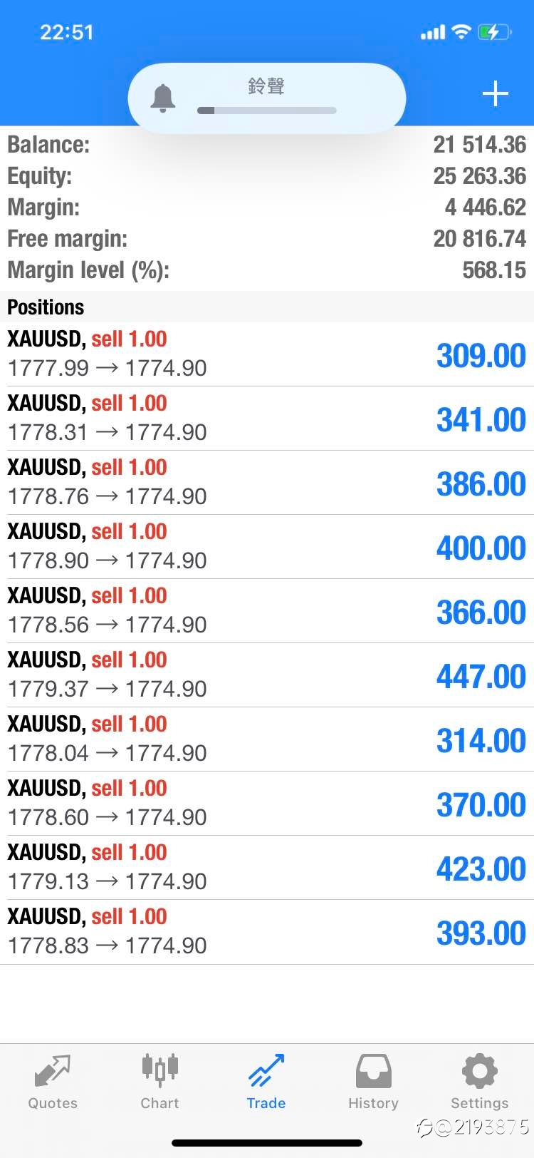 白天黃金多單止損出局,還好掛了破位空單