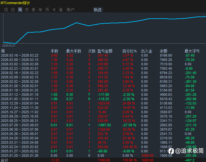 流星EA 离700%更近一步,经受住黄金多次极端单边行情,顺势交易,单单带止损止盈