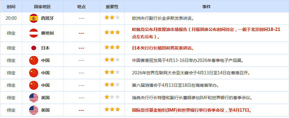 CWG Markets市场资讯2026年4月13日(周一 汇讯摘要: 周一盘初,因美伊谈判未达成协议,且特朗普决定封锁伊朗海上交通,WTI原油大涨10%、黄金跌100美元、白银跌4%、美股股指期货跌逾1%。 上周五,市场等待美伊谈判结果,且以色列已寻求与黎巴嫩进行谈判,这为霍尔木兹海峡的重新开放带来了希望。 美元指数连续第五个交易日收阴,最终跌0.14%,报98.67点,创一月以来最差单周表现;基准的10年期美债收益率收报4.3400%,对美联储政策利率敏感的2年期美债收益率则小幅回落至3.8100%。 周一(北京时间4月13日)亚市早盘,现货黄金开盘下跌超2%,交投于4652美元/