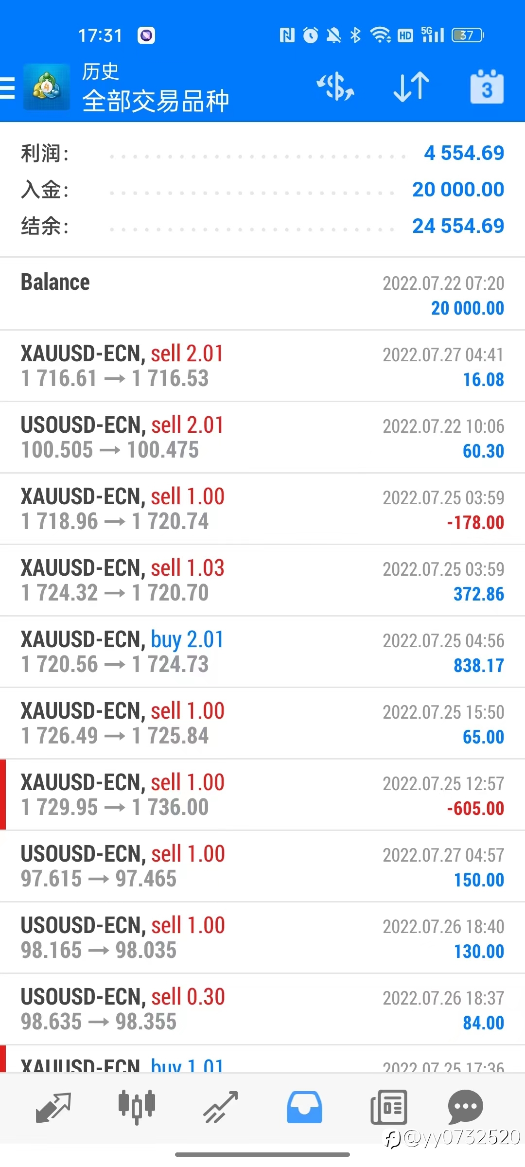 - 专注欧元 :兄弟,1000刀下o.1都很高啊,要保持好的心理状态,在金油上别超过0.03,做好了每月也能干4o,5o%,别贪