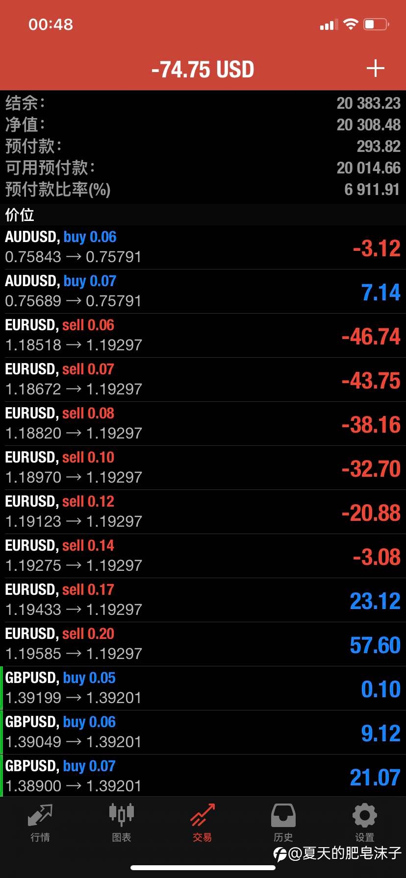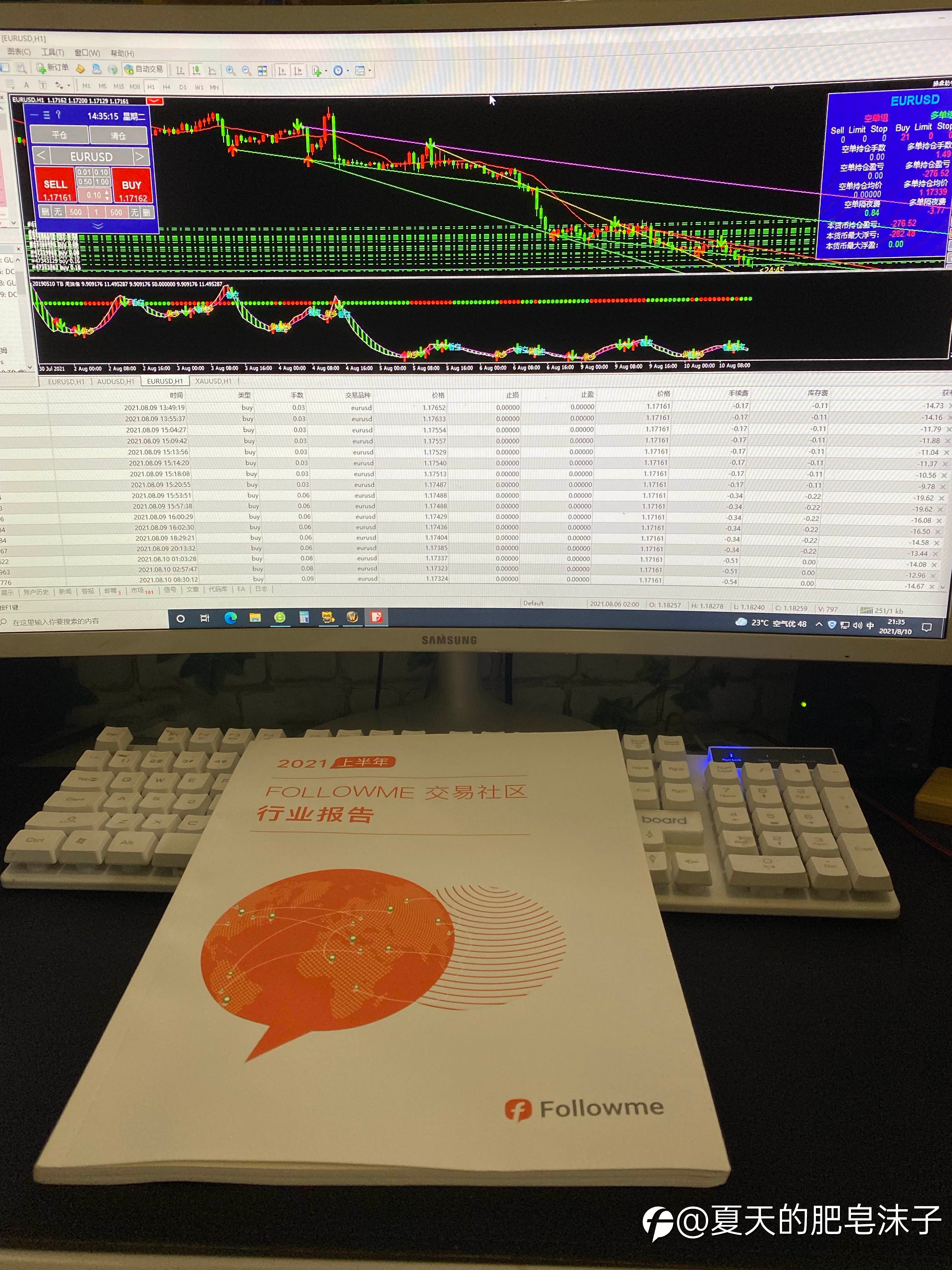 哎,打个卡吧,这是一个3月30号搞的2w的账户,在4月1号时由于指标点位问题欧元开了空单,而其它两个账户都是多单(具体可以查看2号3号账户历史订单),当时仓位不大没太当回事,觉得是震荡行情可以正常吃肉。然后欧...