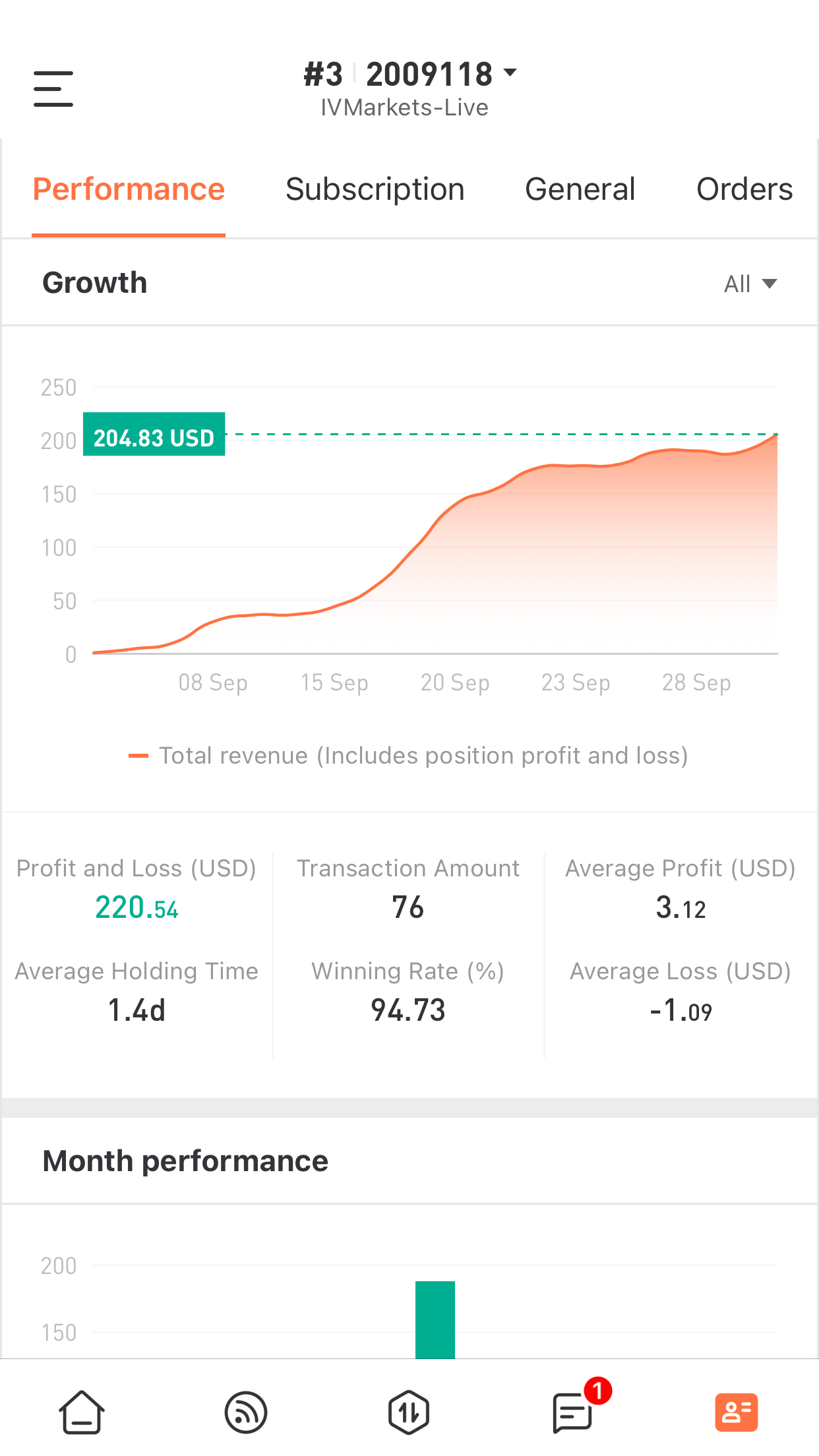 September trading results Trades:78 Winrate:94% Growth: 611%