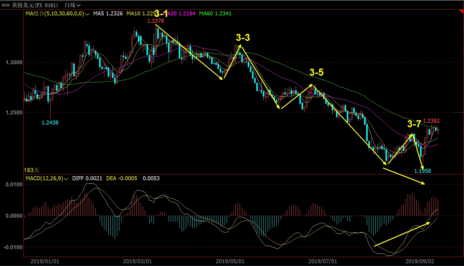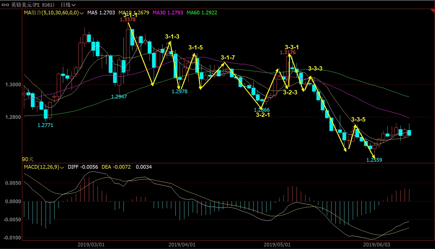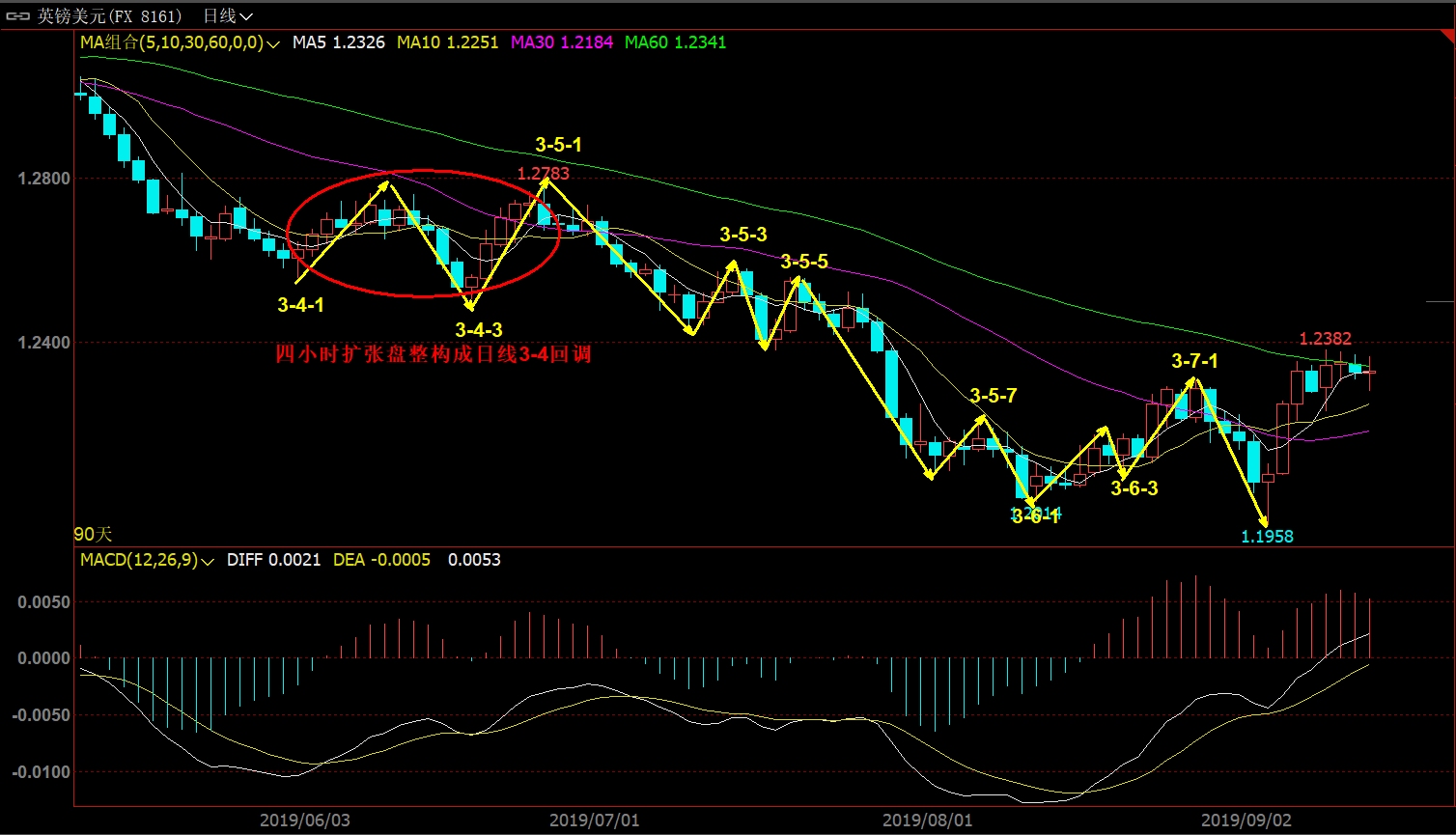 2020 0418 走势的核心是走势终完美(不明白的去看缠师的108篇)! 看懂行情的关键是弄清楚级别,我称之为学数数! 操作的关键是在选好级别的前提下踏准节奏,有点像打网球,多头打完空头打,空头打完多头打;谁要是分不清级别,或者不守规矩胡乱抢拍,绝对被市场修理的鼻青脸肿! 好了,废话少说,看图说话!接下来用英镑最近的周线和日线图教大家学数数! 首先是做一单可以拿半年的周线图! 接下来我们仔细看看周线第3浪的内部日线结构! 七浪的线段下跌是不是很漂亮,最后走势背驰是不是很完美! 日线还不过瘾,我们继续看日线内部的四小时结构! 一张不够用,再来一张!对了,你发现传说中的3浪3内部结构完美点了吗?