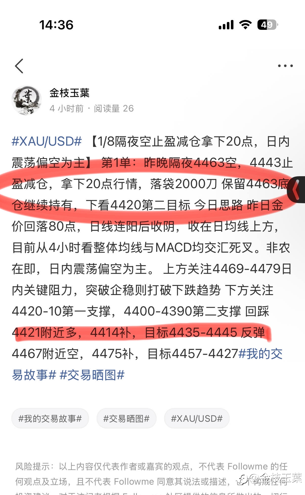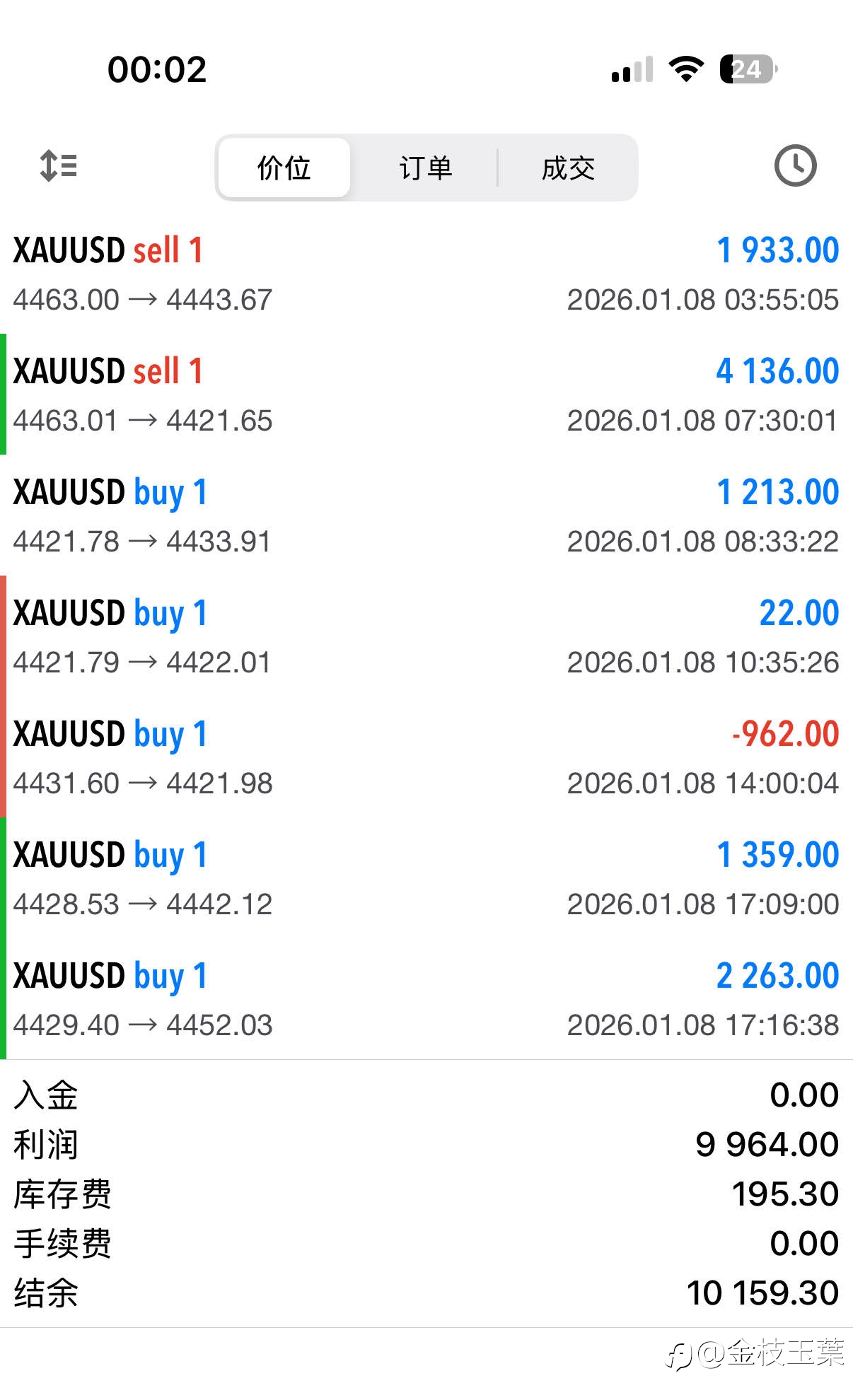 【1/8今日结束,共拿下99点行情】 第1单:4463隔夜空,4443/21止盈,综合拿下60点行情 第2单:4421多,4434止盈,综合拿下12点(底仓回撤保护) 第3单:4431多,4422风控回撤9点 第4单:442...