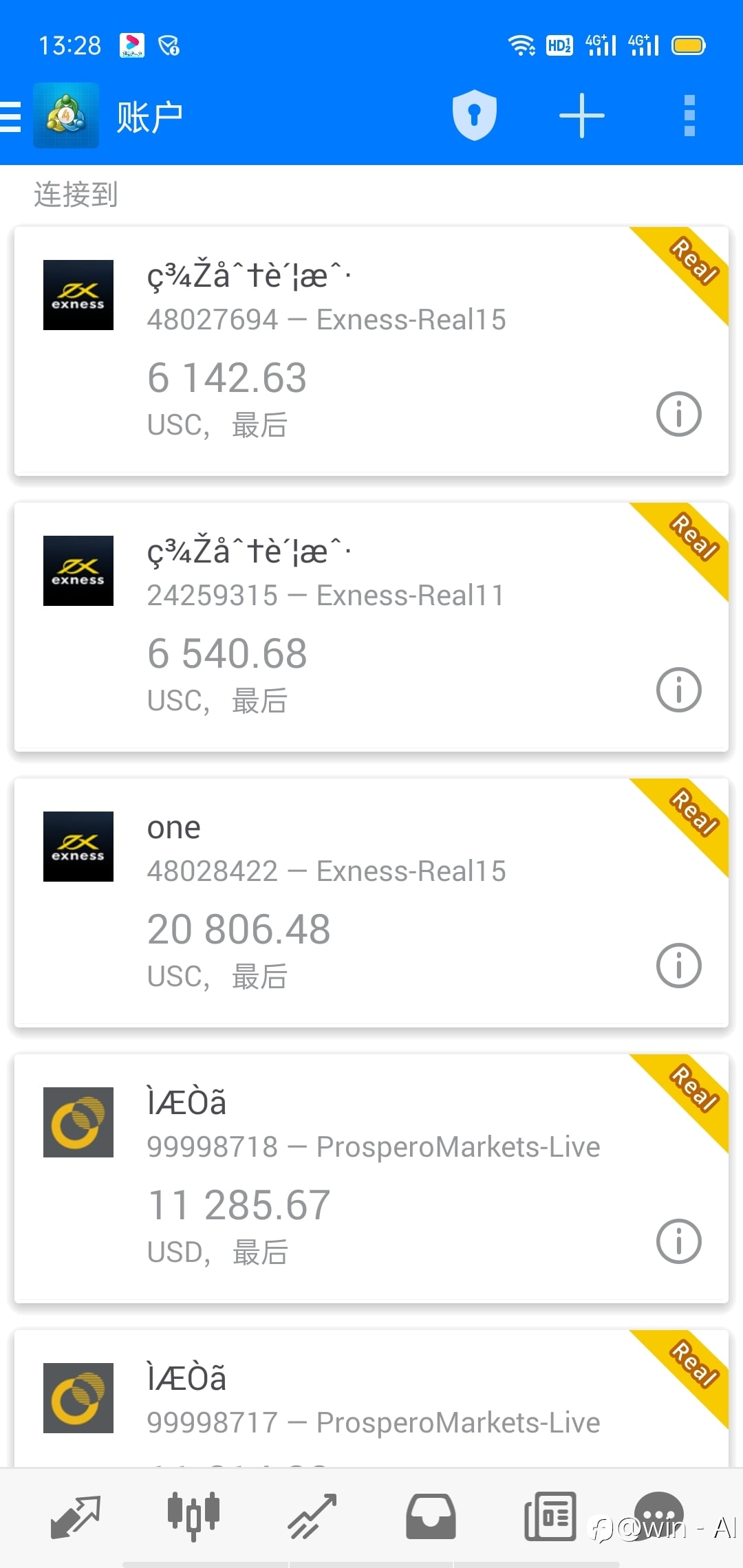 服务器:Exness-Real15 账户:48030233 密码:abc123 服务器:Exness-Real15 账户:48028423 密码:abc123