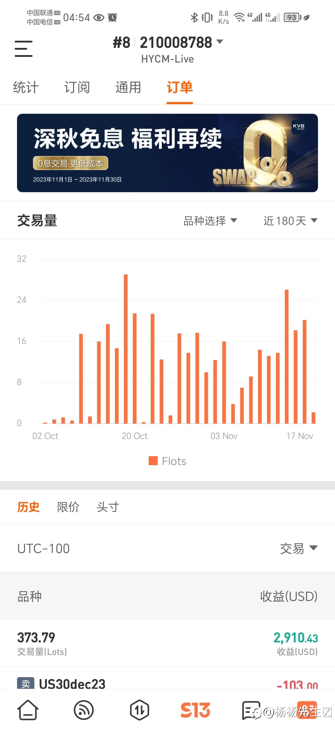 深夜起来,看了看账户,每周一早上提前复盘,是的,随着技术的越来越成熟,想想以前交易的种种不安,现在越发的知道这条路走通了,混合式~~,这个交易量应该很香吧,券商代理商应该很喜欢吧😂