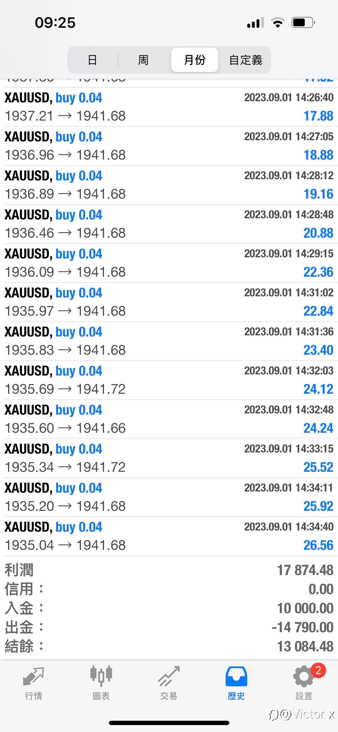 好久不更新暴力马丁账户了,ex账户24150188从6月21日入金25000截止目前为止盈利15700!还有刷单ea,欢迎大家咨询