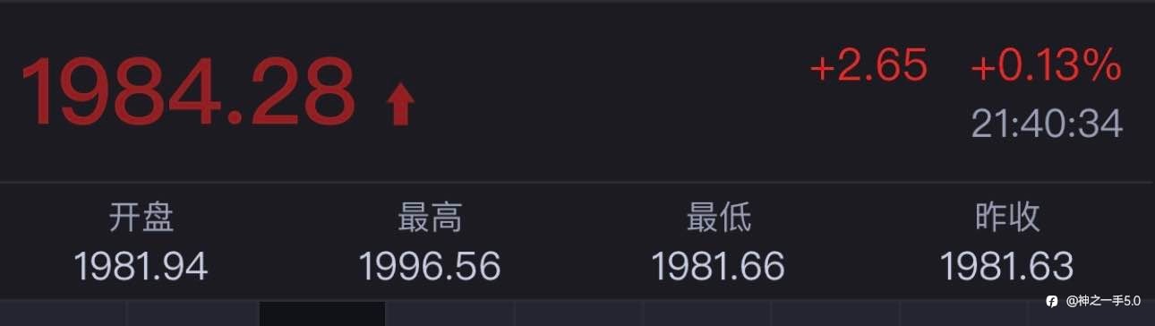 黄金现价1984,多进去,止损1981,目标2004!操作建议仅供参考!