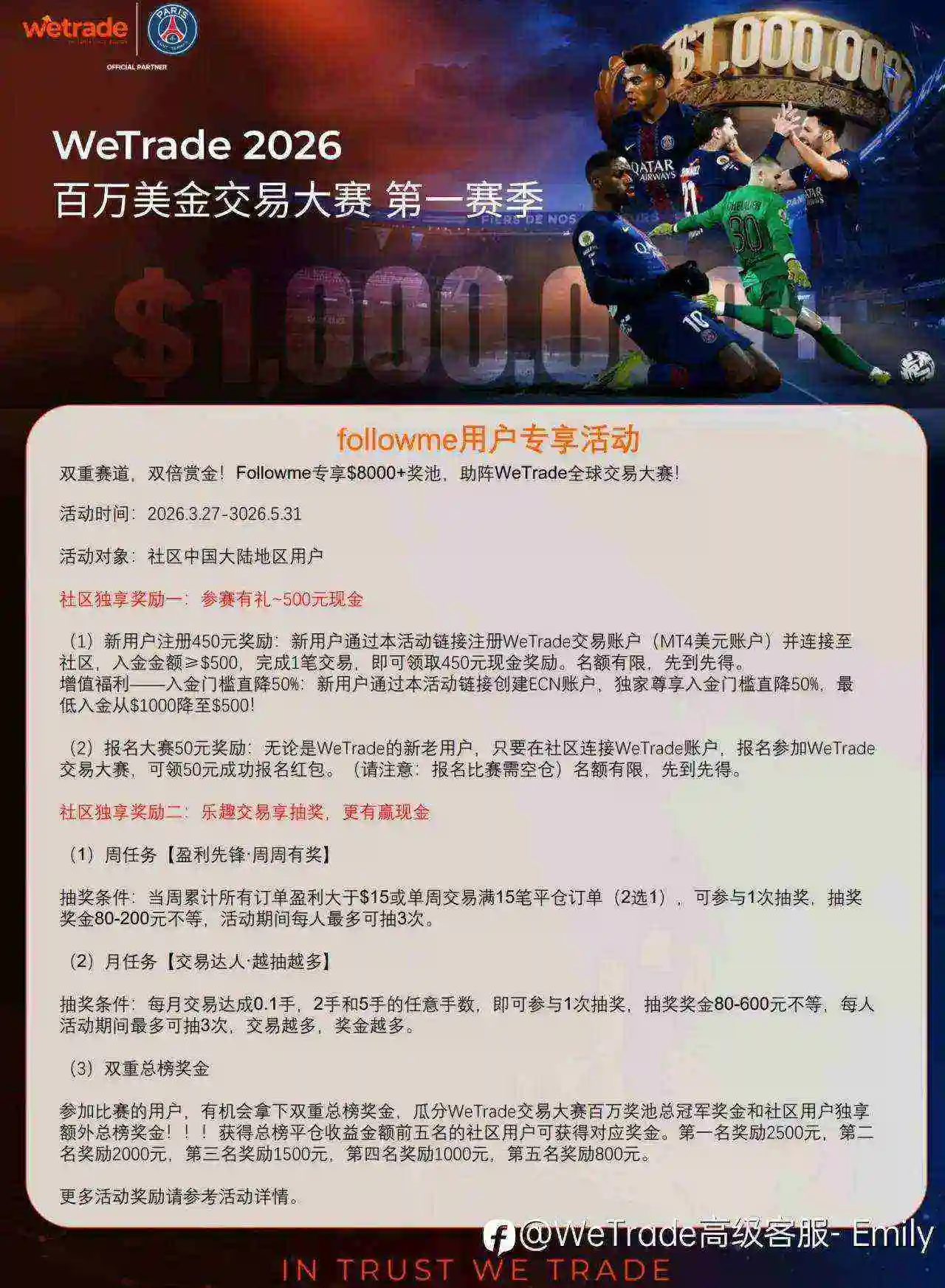 双重赛道,双倍奖金,followme &WeTrade独享活动即将开启,助阵2026百万美金大赛