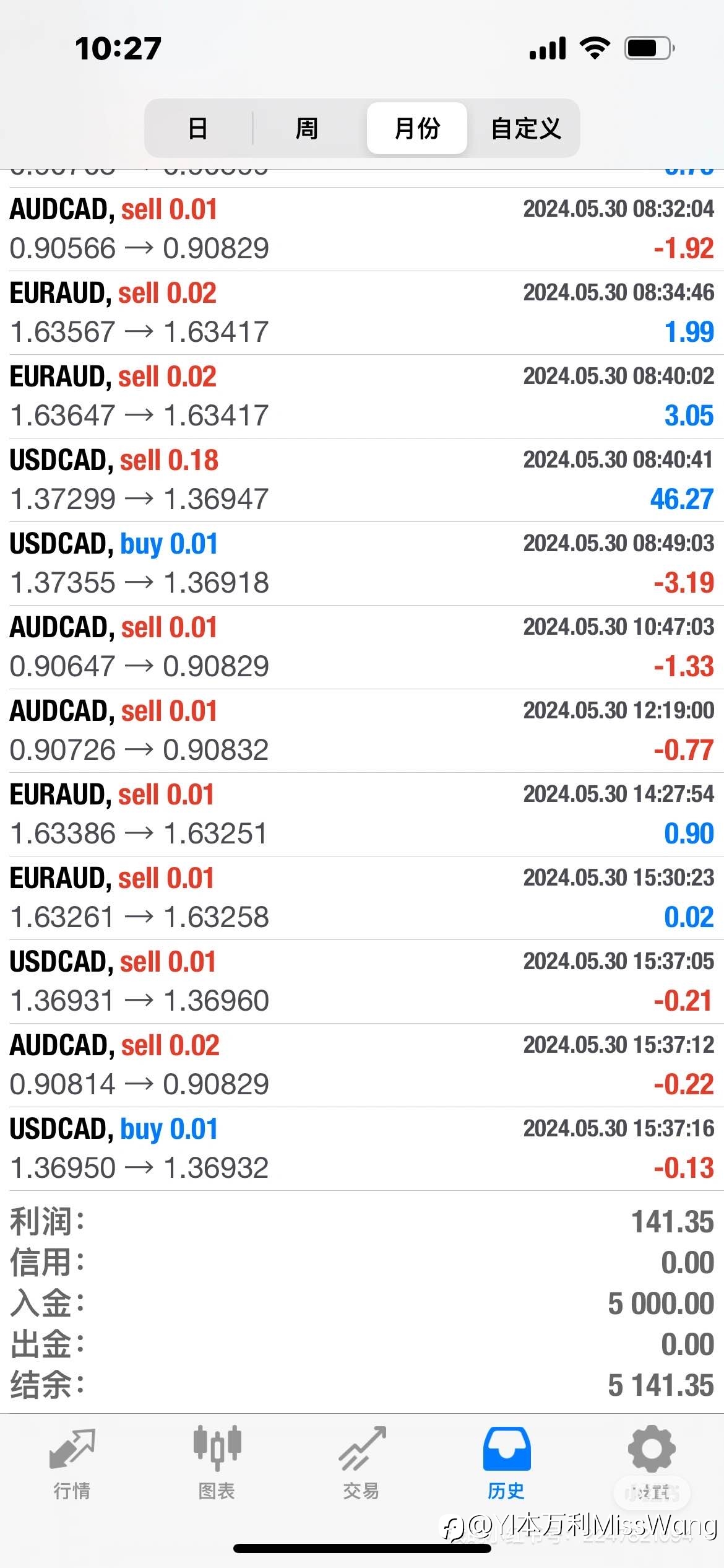 9️⃣6️⃣4️⃣综合货币量化交易稳定策略(风控30%),账号跟随服务--新客户账号,5.25入金5000$,一周盈利141.35$,技术实力看得见:所有策略盈亏,皆有风控买单