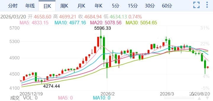全球金市正上演一场惊心动魄的“七连跌”惨剧。周四(3月19日),现货黄金价格暴跌3.5%,收于每盎司4650美元,盘中一度跳水逾6%,创下2月初以来最低点4503.18美元/盎司。美国4月期金更是重挫5.9%,最终收在4605.70美元。这已是金价连续第七个交易日下行,周五(3月20日)亚市早盘, 现货黄金震荡微跌,目前交投于4640美元/盎司附近。 一、黄金吸引力瞬间归零 就在金价崩盘的同一周,几乎所有主要发达经济体的央行都召开了会议,结果无一例外——利率原地不动。 欧洲央行维持利率不变,却明确警告油价飙升将给欧元区增长和通胀前景蒙上阴影;日本央行虽倾向收紧政策,但也按兵不动;英国央行更是全