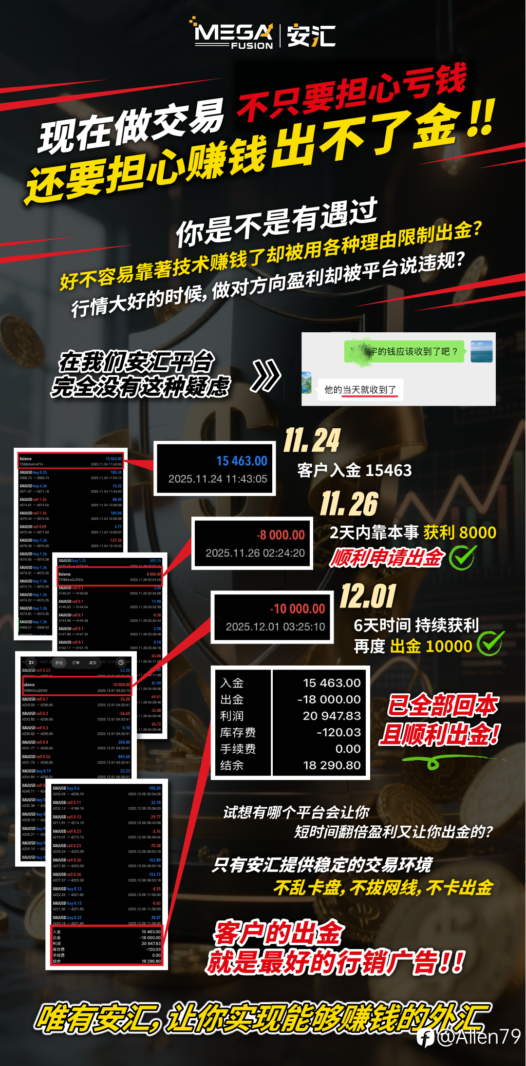 为什么我最后选择了 MEGA FUSION 安汇? 做外汇交易这么多年,我最有感的一件事就是: 赚钱不难,难的是把赚到的钱“安全留下来”。 以前换过不少平台,有速度慢的、滑点大的、服务敷衍的,也遇过明明赚钱却提款卡...
